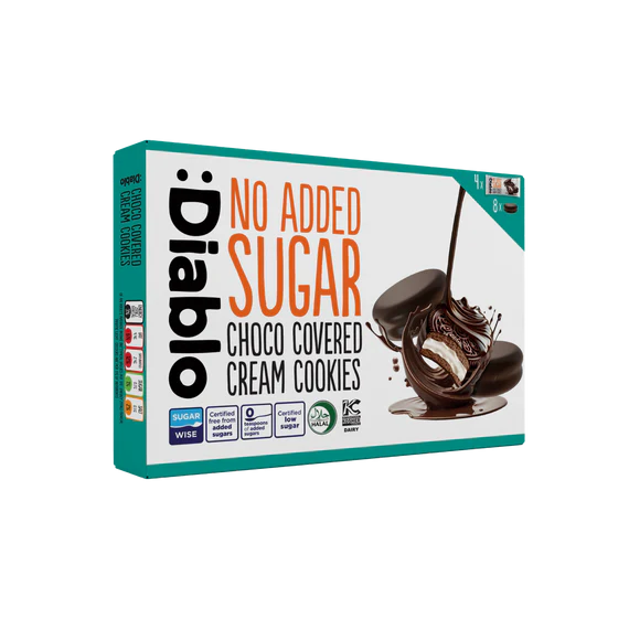 Disfruta del sabor irresistible de las galletas con chocolate, ahora en su versión sin azúcar. Las Galletas Bañadas en Chocolate de :Diablo en su paquete de 136 gramos son la opción perfecta para un antojo, un postre ligero o para compartir. Con una galleta crujiente y un cremoso baño de chocolate, son el acompañamiento ideal para tu café o té, perfectas para quienes cuidan su ingesta de azúcar sin renunciar al sabor.