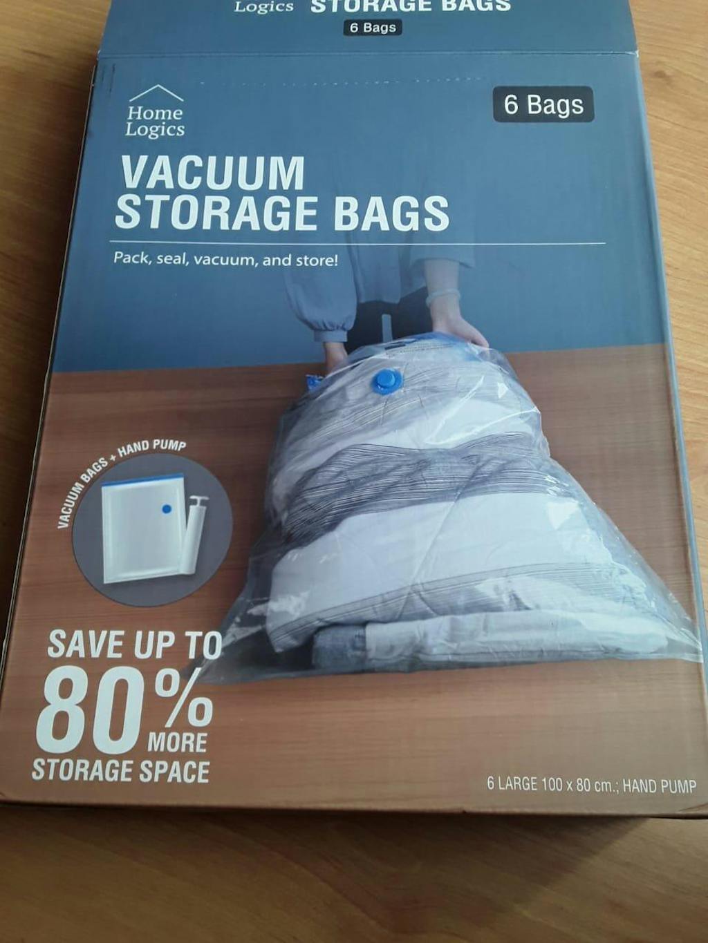 - Set 6 bolsas tamaño LARGE (100 x 80 cm) y una bomba manual para sellado rápido.