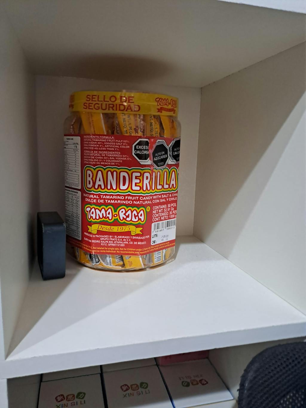 Pulpa natural de tamarindo, azucar de caña, sal yodada, aji molido, rojo allura AC