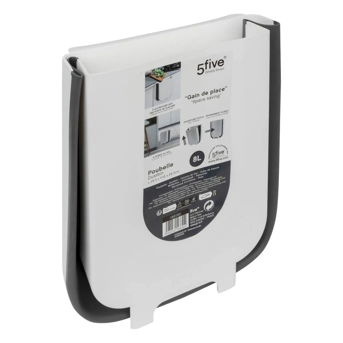 Cubo Basura Retráctil Blanco/Gris 8L 5Five 1 un Preventa