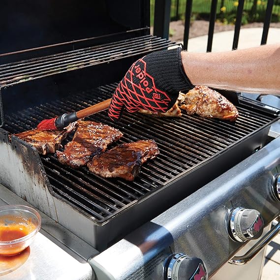 - Protección Extrema: Fabricado con fibras de aramida de alta resistencia al calor, el guante puede soportar temperaturas de hasta 540 °F (282 °C), protegiendo tu mano y antebrazo.