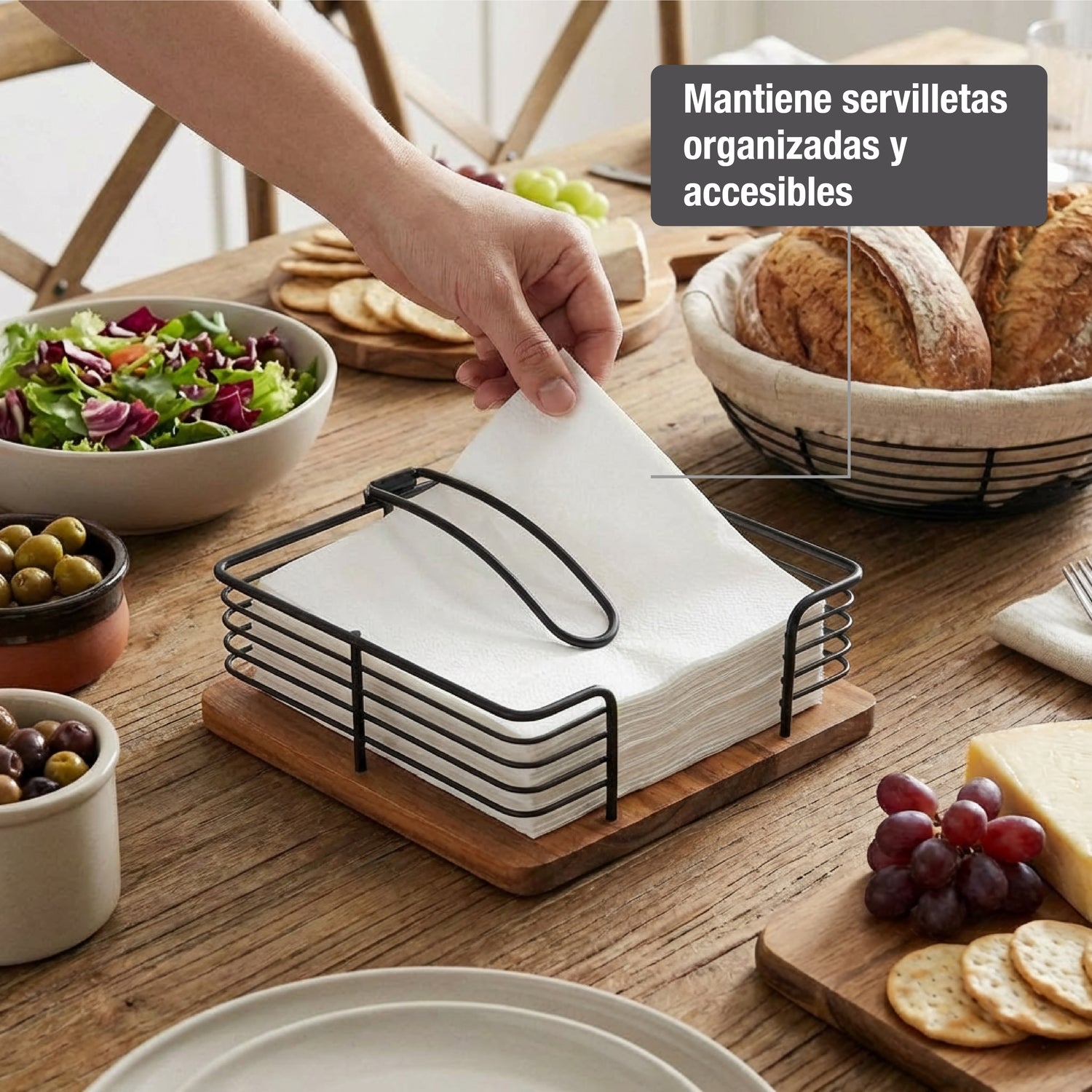 - Diseñado para mantener servilletas organizadas y accesibles.