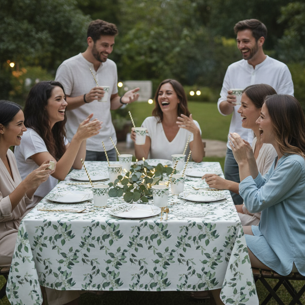 Celebra con elegancia y frescura con el Set Decoración Fiesta “Eucalyptus” para 24 personas. Incluye vajilla, servilletas, manteles y popotes de papel con un delicado diseño botánico que aporta estilo y armonía a cualquier mesa.