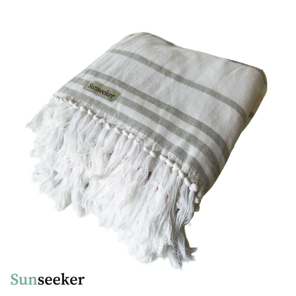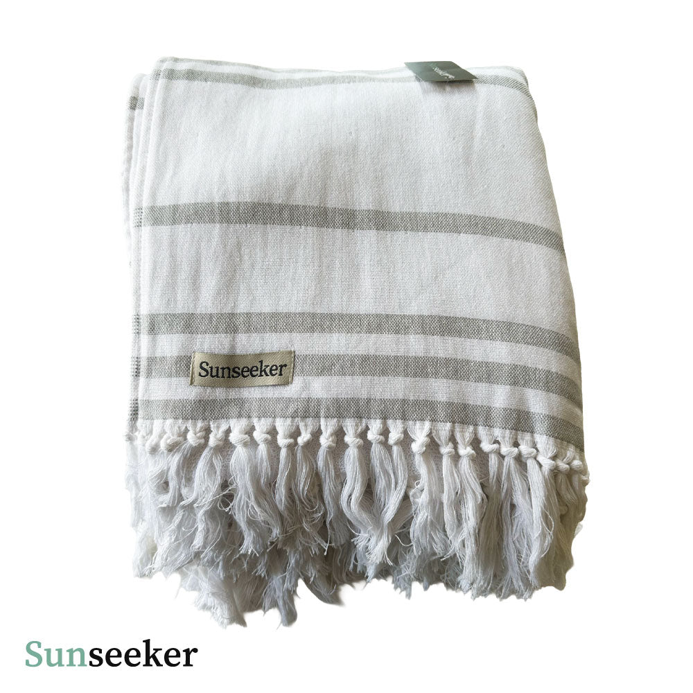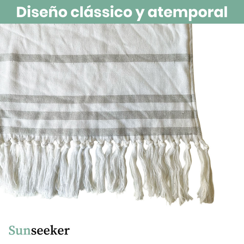 Toalla Playa Algodón con Flecos XL Rayas Blanca Sunseeker 1 un Preventa