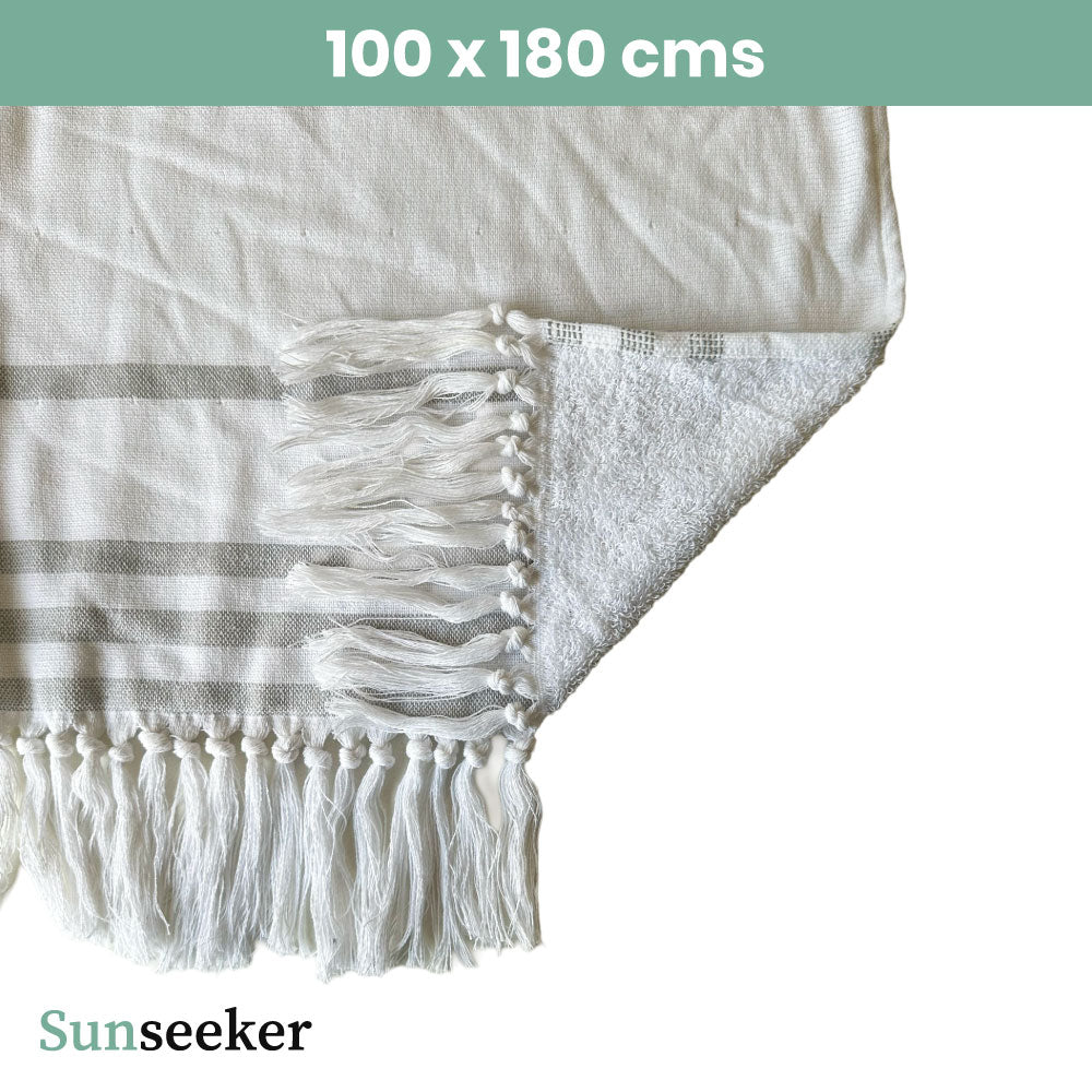 Toalla Playa Algodón con Flecos XL Rayas Blanca Sunseeker 1 un