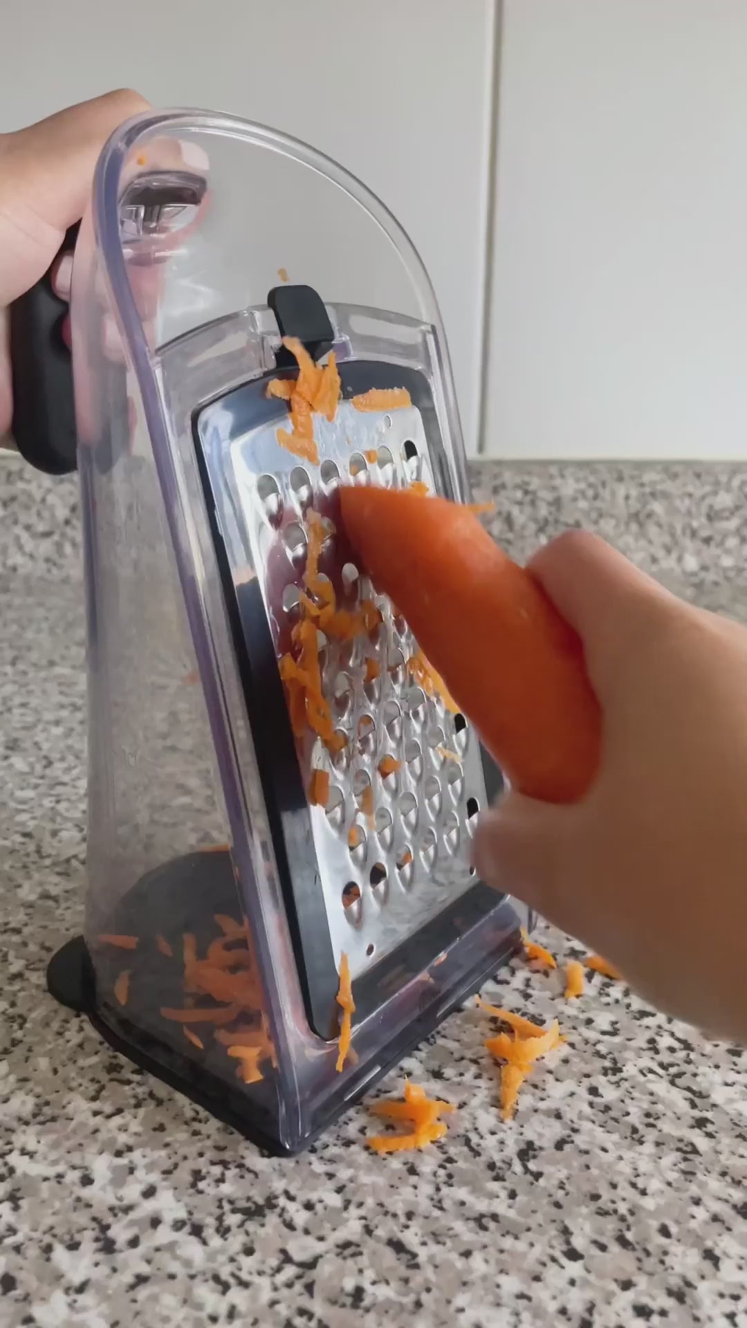 - Rallador 3-en-1: fino, medio y grueso.
