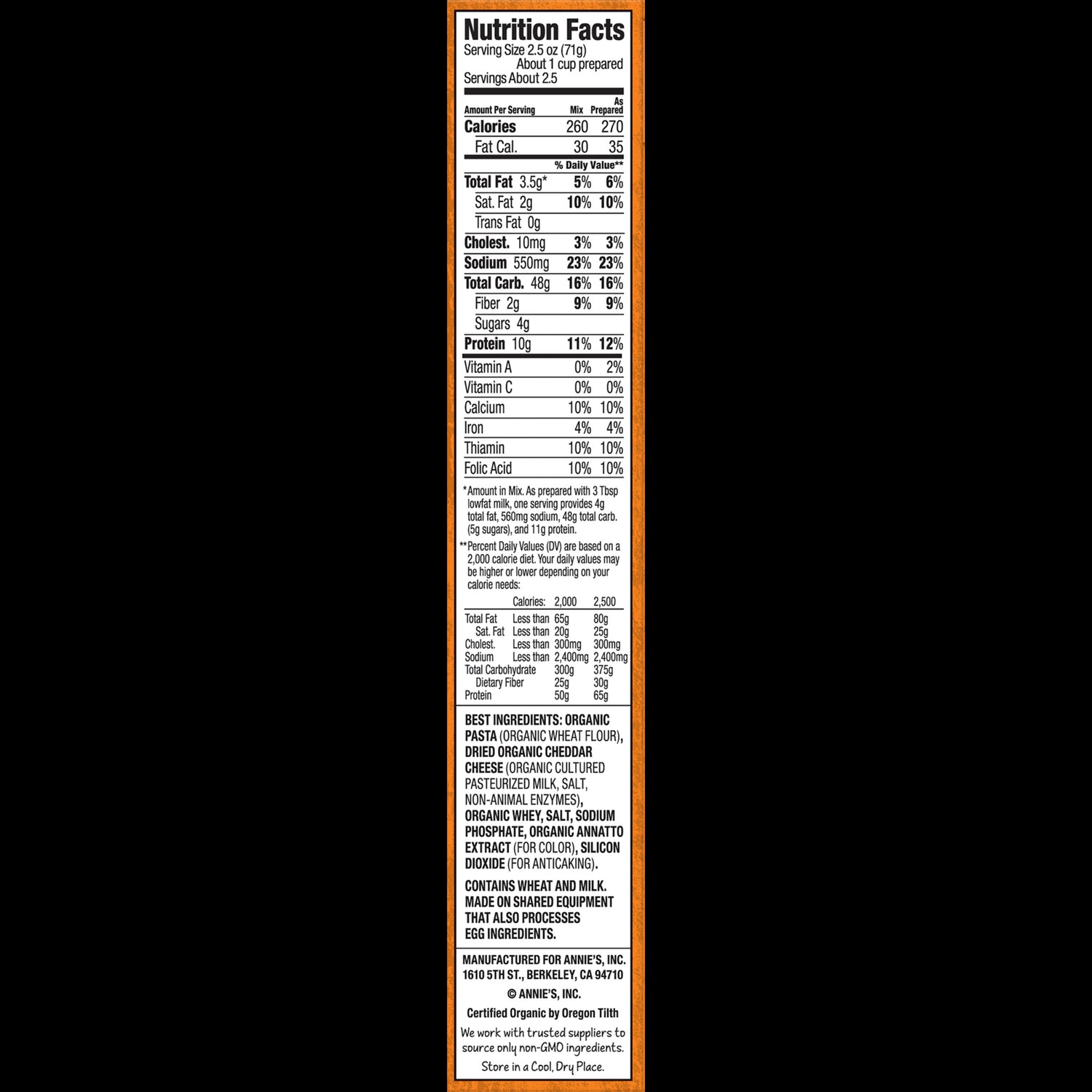 Macarrones con Queso Cheddar Maduro Annie's 170 g Preventa: El envío de este producto y todos lo que estén en tu carrito serán a partir del 30 de junio.